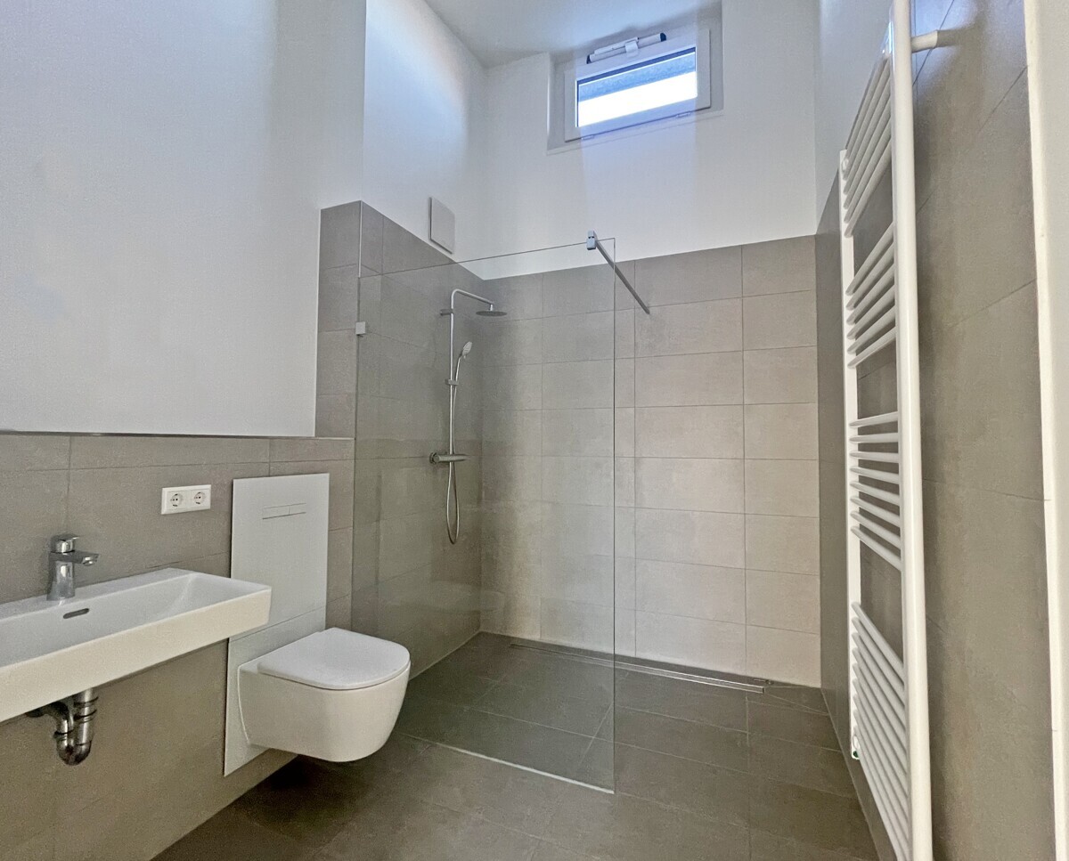 Das modern ausgestattete Tageslichtbad ist besonders. Die bodengleiche Dusche sorgt für maximalen Komfort – hier beginnt und endet jeder Tag entspannt.