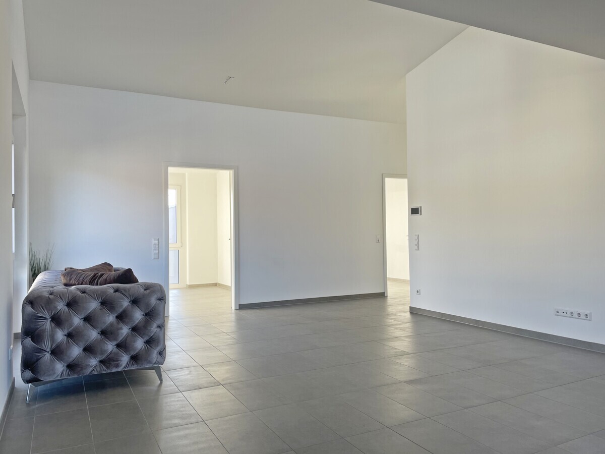 Schon beim Betreten fällt die helle, offene Atmosphäre auf: hohe Decken, Oberlichter und bodentiefe Fenster lassen Licht in jeden Raum strömen und schaffen ein Gefühl von Freiheit und Weite.