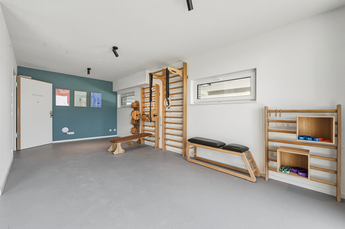 Darüber hinaus profitierst du von einer großzügigen Gemeinschaftsterrasse, auf der du pausieren oder dich mit anderen austauschen kannst. Ein Sport- und Yogabereich lädt zu Bewegung und Ausgleich ein. Die Waschküche ermöglicht dir eine bequeme Wäschepflege, und im eigenen Kellerabteil verstaust du alles, was du nicht täglich benötigst.