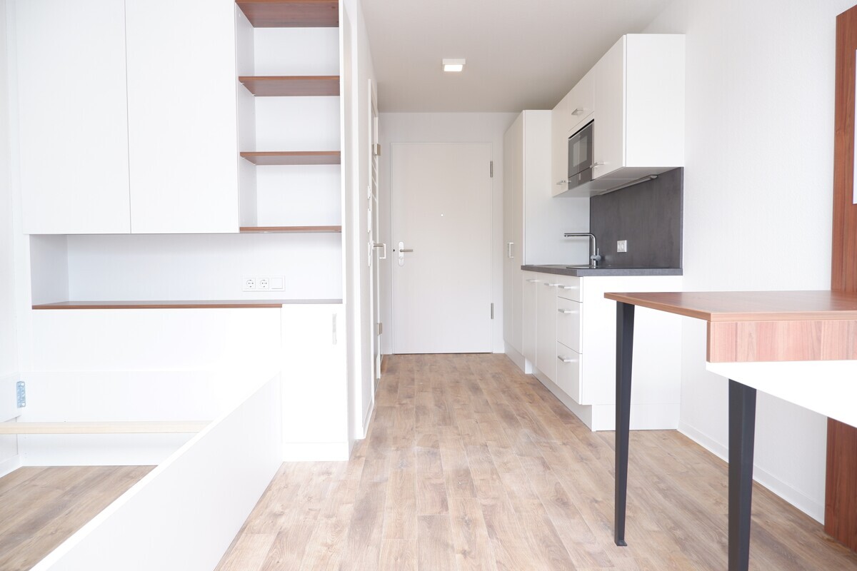 Die 72 Apartments sind komplett möbliert und konkret auf die Bedürfnisse von Studierenden und Schülern ausgelegt. Sie bieten barrierefreien Zugang zu allen Bereichen durch einen Aufzug vom Untergeschoss bis ins 3. Obergeschoss. Zu jedem Apartment gehört eine Terrasse oder ein Balkon als eigener Außenbereich. Die praktische Küchenzeile mit Elektrogeräten dient zur eigenen Versorgung und das erstklassige Bad mit bodengleicher Dusche lässt keine Wünsche offen. Die moderne Ausstattung und Einrichtung der Apartments bewirkt eine echte Wohlfühl-Atmosphäre.