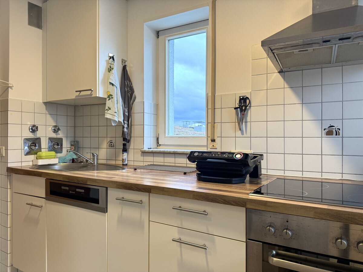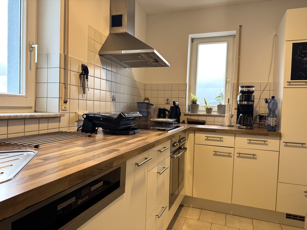 Das große Wohn- und Esszimmer überzeugt durch seine Großzügigkeit und den gelungenen Zuschnitt. Von hier aus gelangen Sie direkt auf den Balkon. Angrenzend befindet sich die Küche mit Tageslicht, die mit einer Einbauküche ausgestattet ist. Diese kann vom Vormieter gegen eine Ablöse übernommen werden.