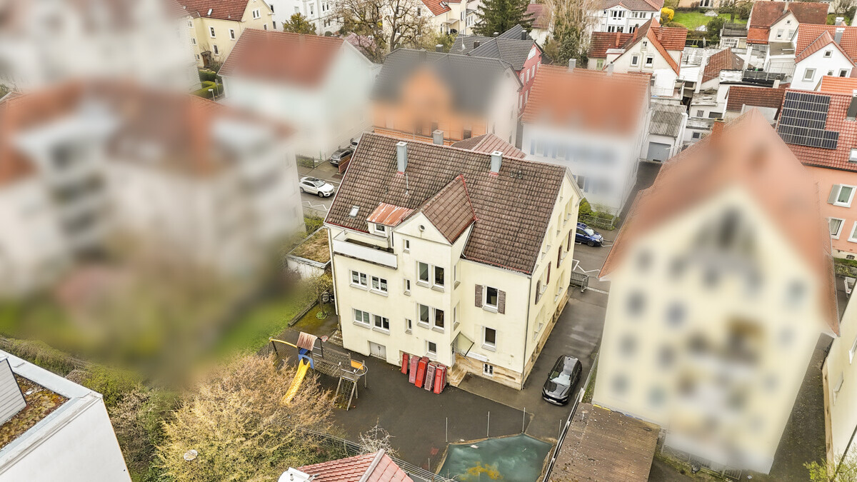 Die bestehende Struktur eröffnet zahlreiche Perspektiven: Das Erdgeschoss, ehemals als Kindergarten genutzt, kann im Zuge einer Nutzungsänderung in zwei attraktive Wohneinheiten umgewandelt werden. Auch im Obergeschoss besteht zusätzliches Ausbaupotenzial, da bislang gewerblich genutzte Flächen künftig weiteren Wohnraum schaffen können. Bereits vorhanden ist eine vermietete 3-Zimmer-Wohnung im 1. Obergeschoss. Im Dachgeschoss befinden sich eine 3-Zimmer- sowie eine 2-Zimmer-Wohnung, die zusätzliche Vermietungsmöglichkeiten bieten.