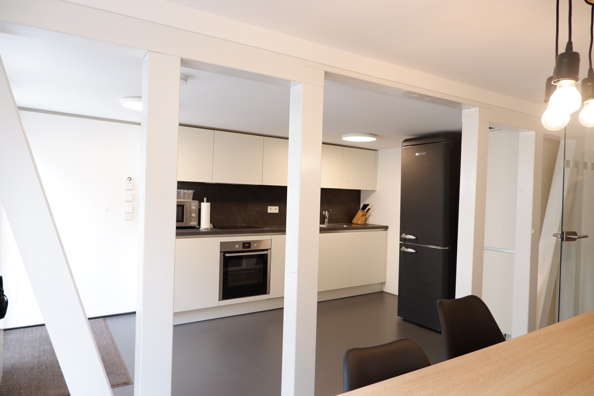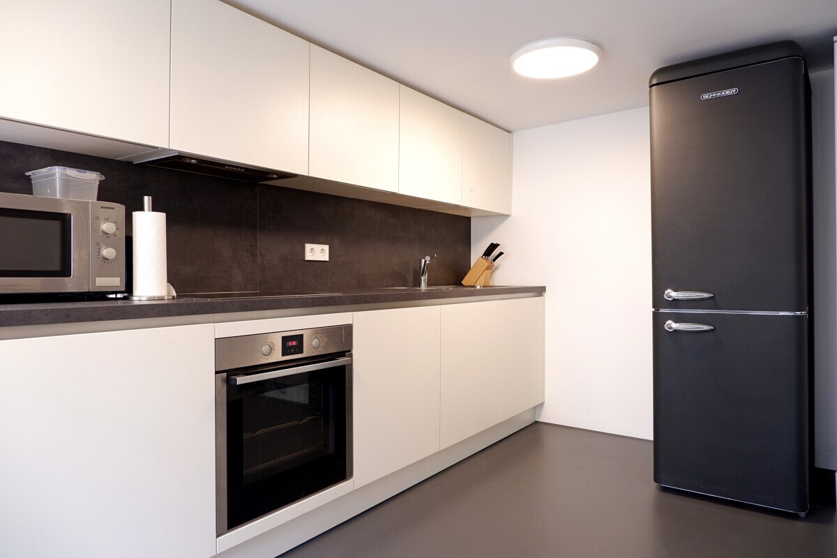 In der geräumigen, voll ausgestatteten Küche hast Du genügend Platz, um gemeinsam mit Deinen Mitbewohnern zu kochen und Zeit zu verbringen – gleichzeitig bietet die Wohnung ausreichend Rückzugsmöglichkeiten für Deine Privatsphäre. Die Gemeinschaftsräume sowie die angrenzenden Terrassen laden zu entspannten und geselligen Stunden mit Freunden und Mitbewohnern ein.